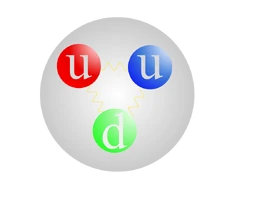 Protons are a kind of nucleon that contains one down quark and two up quarks, and these quarks are held together by gluons. Protons are almost always found within atoms, and they have a positive charge. The other kind of nucleon, called a neutron, are usually found near them as well. Protons are slightly larger in size, but also slightly less massive in mass, in comparison to Neutrons.